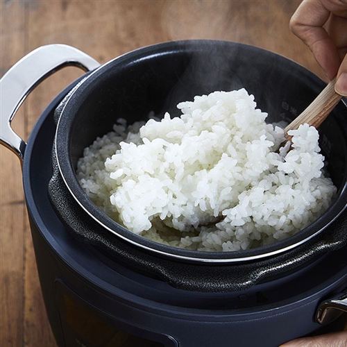 高圧での吸水・蒸らしにより、25分でもふっくら美味しく炊き上げます。