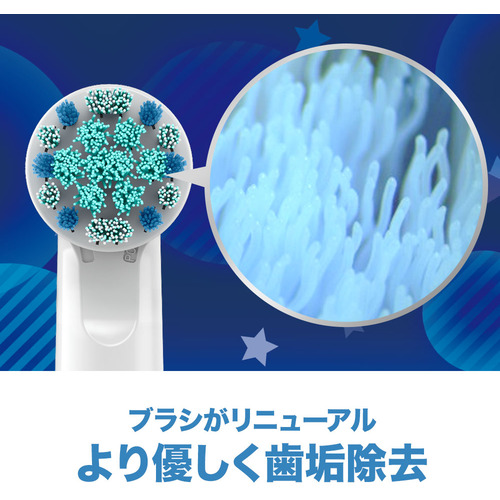 ●子供用やわらかめブラシ搭載。歯ぐきにやさしくツルツルの磨きあがり