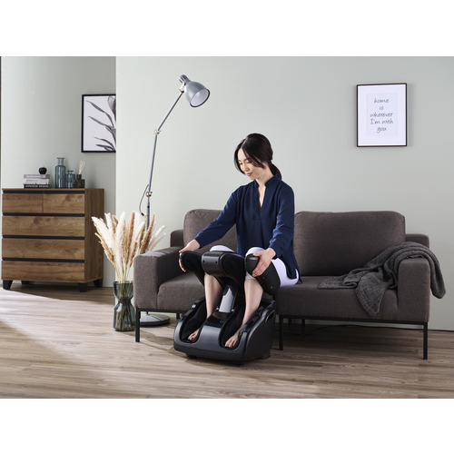 疲れが溜まりがちな足裏〜太ももまでのマッサージポイントを独自のもみ板と回転ローラーで揉み込み、足裏振動機能やお好みの強さに合わせてふくらはぎ部の幅調節が可能な独自機構を採用。