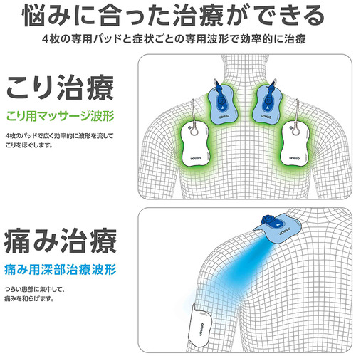 ●こり用マッサージ波形が4枚パッドで広範囲をもみほぐします。