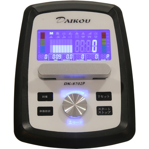 パネル表示:速度、時間、距離、カロリー、負荷、心拍数、回転数