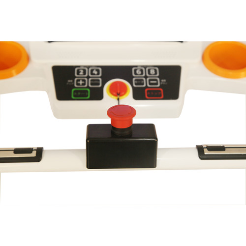 万が一の場合に備え、通常のセーフティーキーに加え、パネルに緊急停止ボタンも設置されているので、ワンタッチで緩やかに停止。