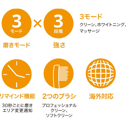 磨きモード:クリーン、ホワイトニング、マッサージ