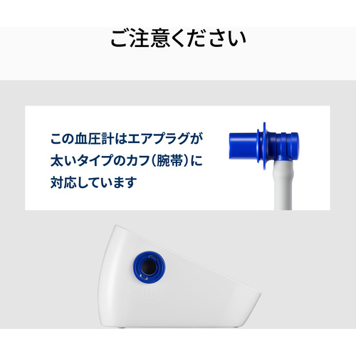 細腕用腕帯(別売)と太腕用腕帯(別売)にも対応するので、これまで測定できなかった腕の細い方や太い方でも測定できます。