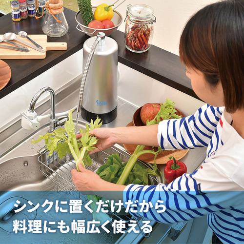 災害時だけでなく、普段は浄水器として、生野菜を洗うとき、お米を研いだり、炊いたりするとき、お味噌汁やスープなど、口に入るすべての水にストレスなくお使いいただけます。