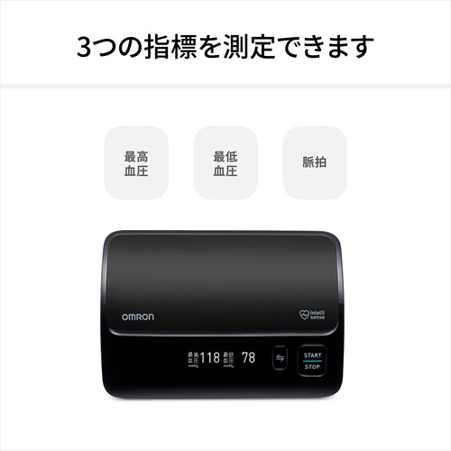 表示部には、視認性の良い「有機ELディスプレイ」を採用。測定開始時には「Hello!」というメッセージの後、カフ(腕帯)が適切な強さで正しく巻けているかをチェックし、結果をマークで表示します。測定終了後には、測定結果の表示のほか、測定中に体が動いたり、カフの巻き方がゆるかったりした場合には、「再測定をおすすめします」というメッセージやその理由をマークや文字で表示するので、安心して毎日の血圧測定を行えます。