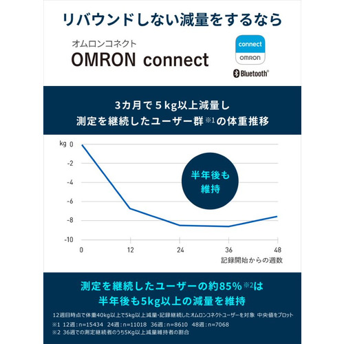 オムロンコネクトアプリへの自動転送機能により、体重の測定値の推移を可視化し、モチベーションアップに。