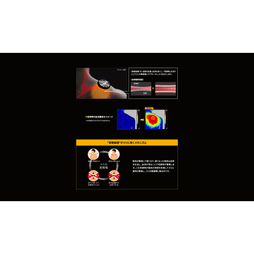 ●ピップ 初 、独自開発の専用モーターが強力磁石を高速回転 。生み出された強力な変動磁場が広く血行を改善し、コリをほぐす 。