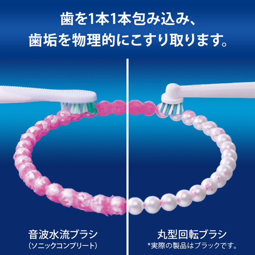 歯の1本1本を包み込んで高速回転するから、水には溶けにくい歯垢を物理的にこすり取ります。歯垢除去力は、臨床試験において99.7%向上すると実証されました。※手磨きとの比較。 P&G調べ。