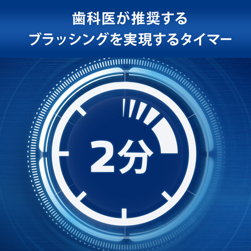 ハンドルに内蔵されたタイマーが、次のブラッシング箇所に移るタイミングを30秒毎にシグナル音でお知らせ。また、歯医者さん推奨の2分間ブラッシング終了時にも、お知らせします。