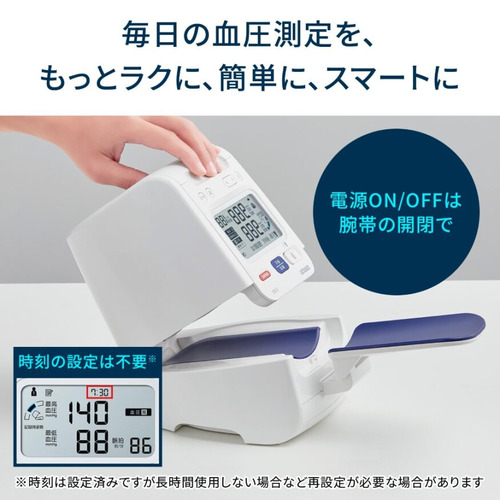 腕帯を開閉することで、電源が自動でON/OFFになります。毎日の血圧測定を、もっとラクに、かんたんに、スマートに