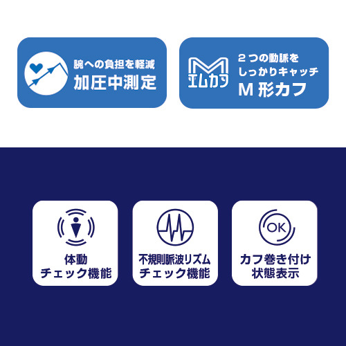 血圧測定範囲:50〜250mmHg(最高血圧) 40〜180mmHg(最低血圧)