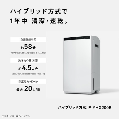 パナソニック F-YHX200B-W ハイブリッド方式 衣類乾燥除湿機 クリーンホワイト