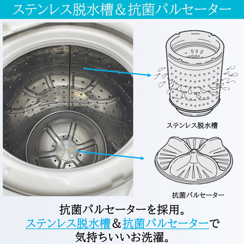 抗菌パルセーターを採用。ステンレス脱水槽&抗菌パルセーターで気持ちいいお洗濯。
