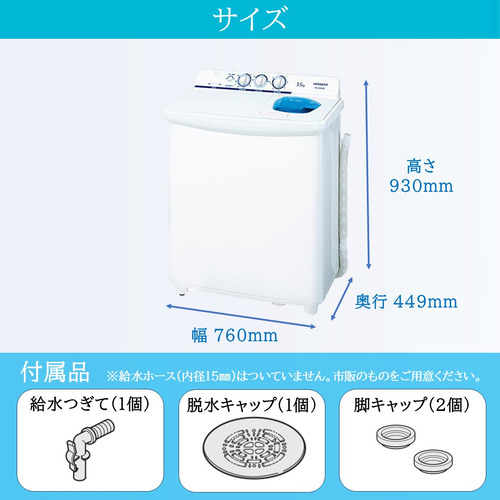 日立アプライアンス 2槽洗 PS-55AS2 W