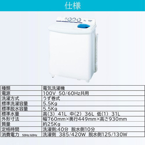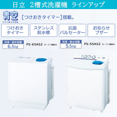日立 PS-55AS2-W 2槽式洗濯機 「青空」(洗濯5.5kg)ホワイト