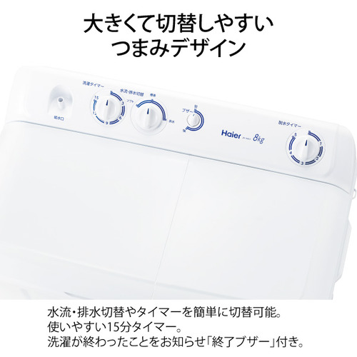 Haier JW-W80F-W 二槽式洗濯機 8kg ホワイト JWW80FW
