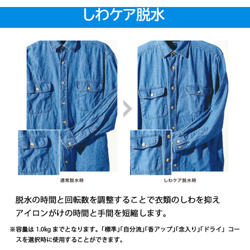 脱水の時間と回転数を調整することで衣類のしわを抑え、アイロンがけの時間と手間を短縮します。