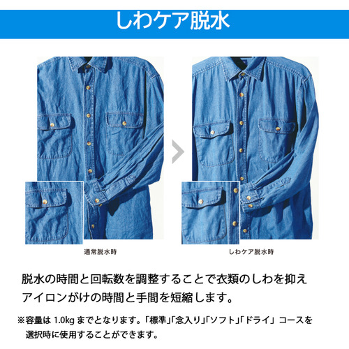 脱水の時間と回転数を調整することで衣類のしわを抑えアイロンがけの時間と手間を短縮します。