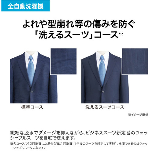 繊細な脱水でダメージを抑えながら、ビジネススーツ新定番のウォッシャブルスーツを自宅で洗えます。