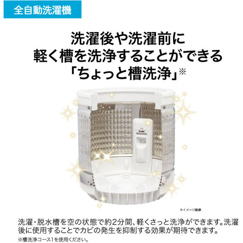 洗濯・脱水槽を空の状態で約2分間、軽くさっと洗浄できます。洗濯後に使用することでカビの発生を抑制する効果が期待できます。