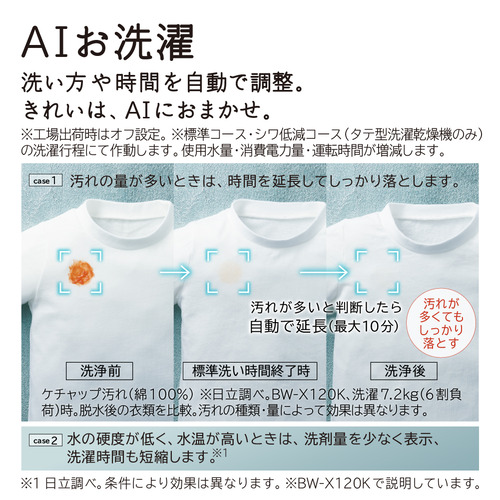 「AIお洗濯」でかしこくきれいに洗う(※)※使用水量・消費電力量・運転時間が増減します。