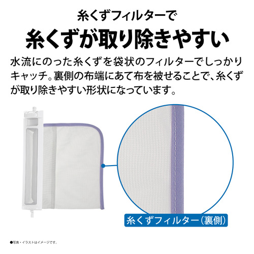 ステンレス穴なし槽なので、洗濯槽の外側や底裏についた黒カビや汚れが槽内へ侵入するのを防ぎ、清潔な水で洗い・すすぎができます。洗濯槽と外槽の間のムダ水をカットするので、節水効果も見込めます。