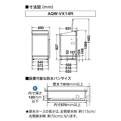 AQUA AQW-VX14R(W) 全自動洗濯機 (洗濯14kg) ホワイト
