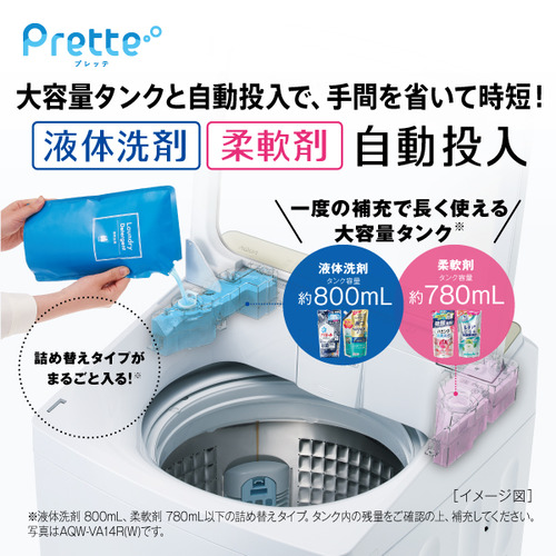 ※:液体洗剤 800mL、柔軟剤 780mL以下の詰め替えタイプ。タンク内の残量をご確認の上、補充してください。
