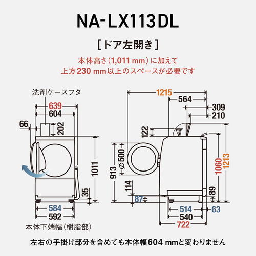 パナソニック NA-LX113DL-W ななめドラム洗濯乾燥機 (洗濯11kg・乾燥6kg) 左開き マットホワイト