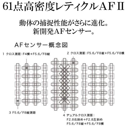 ●「EOS-1D X Mark II」と同じ「61点高密度レティクルAF II」等、フラッグシップ機と同等の優れた機能を搭載