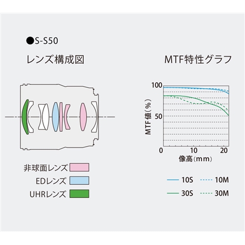 レンズ構成:8群9枚(非球面レンズ3枚、EDレンズ1枚、UHRレンズ1枚)