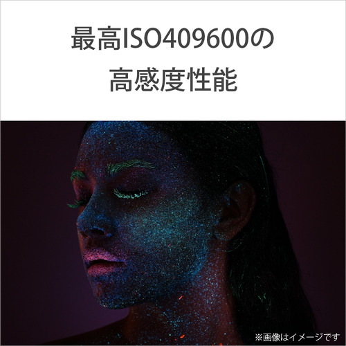 ISO感度:静止画撮影時: ISO 80-102400 (拡張: 下限ISO 40、上限ISO 409600)、AUTO (ISO 80-12800、上限/下限設定可能)、動画撮影時: ISO 80-102400相当(拡張: 上限ISO 409600)、AUTO (ISO 80-12800相当、上限/下限設定可能)