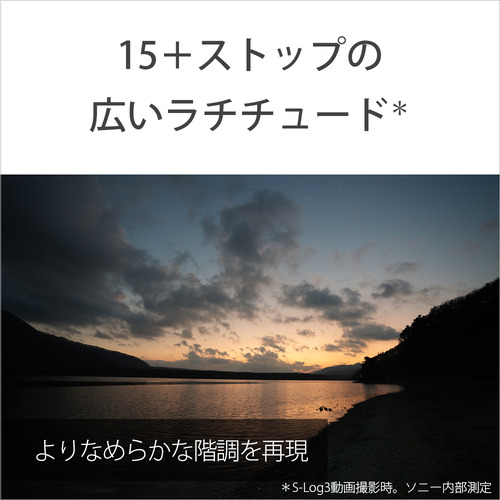 ・複雑なカメラ設定をすることなく、映画のワンシーンのような印象的な画づくりを直感的に一括設定できる新機能「シネマティックVlog設定」(*1)を搭載。自分好みにLook(ルック)やMood(ムード)(*2)を使って撮影でき、シネマスコープアスペクト(2.35:1(*3))での記録にも対応しています。また、肌の色を美しく見せるスキントーンを中心としたルック「S-Cinetone」や、カメラ単体で思い通りの表現ができる「クリエイティブルック」を搭載。さらに、カメラにインポートしたユーザーLUTをピクチャープロファイルとしても使用できる機能(PPLUT)で制作者のさらなるクリエイティブな表現要求に応えます。・(*1) 動画 / S&Qモード時有効。S&Qモード、かつ[XAVC S-I 4K]選択時はシネマティックVlog設定を使用できません・(*2) Lookが[Mono]のとき、Moodは選択できません・(*3) 画像の上下の黒帯も画像の一部として記録されます。映像(画像上下の黒帯を除いた部分)はシネマスコープサイズのアスペクト比になりますが、記録される画像のアスペクト比は16:9です