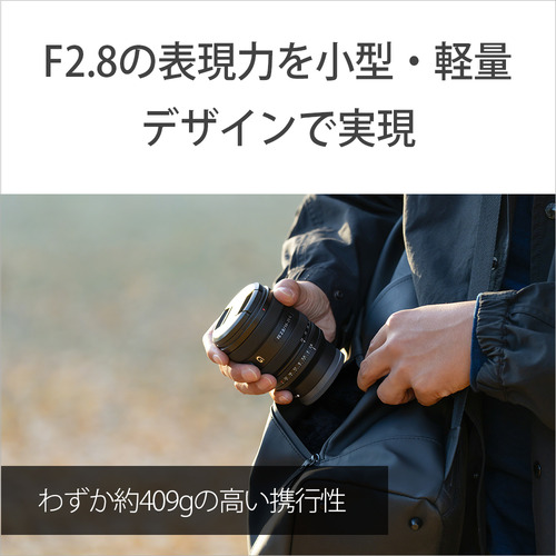 開放F値2.8の大口径レンズながら質量約409gの圧倒的な小型・軽量デザイン