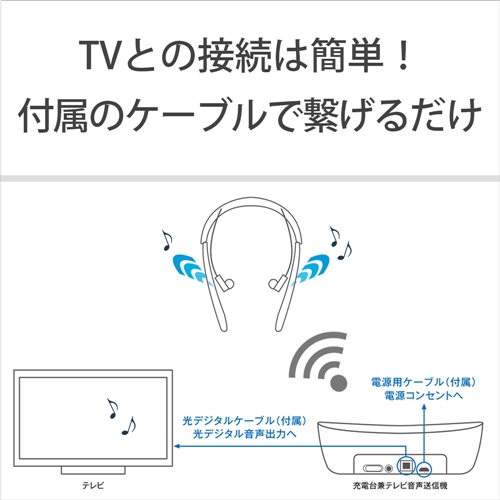 ●テレビ音声をワイヤレス受信。テレビの音を耳元ではっきりと聞ける