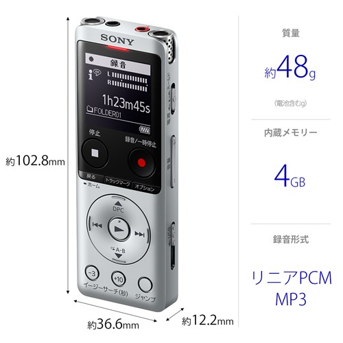 ソニー ICD-UX570F SC ICレコーダー 4GBメモリー内蔵 シルバー ワイドFM対応