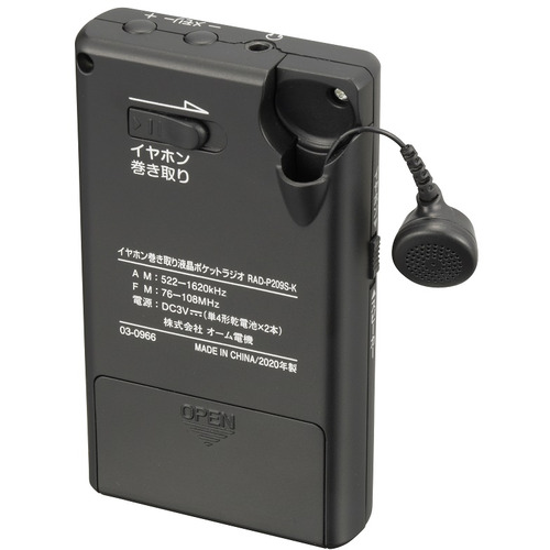オーム電機 RADP209SK イヤホン巻き取りラジオ ブラック
