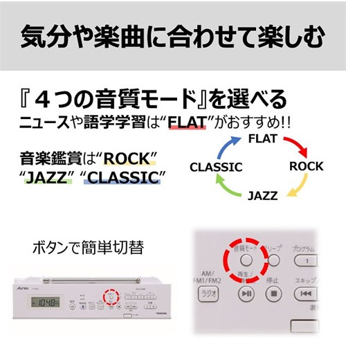 ロック、ジャズ、クラシック、フラットの4つの音質を選べます。