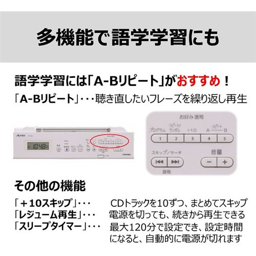 英語学習やトラック数が多いCDを聞くときに役立つ、トラックを10個ずつ飛ばせる「+10スキップ機能」