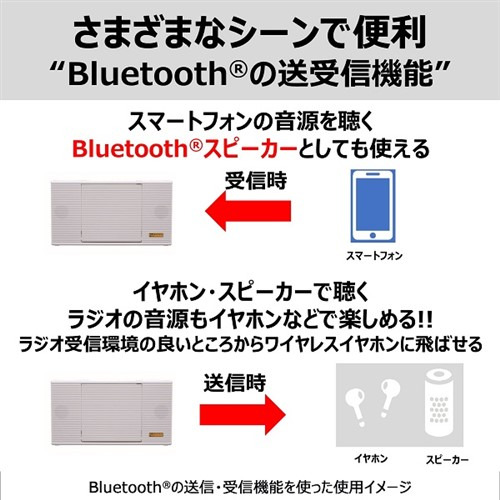 スマートフォンの音源を送信して聴く受信機能だけでなく、本機で再生した音源をお手持ちのBluetoothイヤホン・スピーカーへ送信して聴くこともできます。