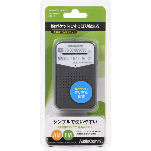 オーム電機 RAD-P133N-H AM/FMポケットラジオ グレー RADP133NH
