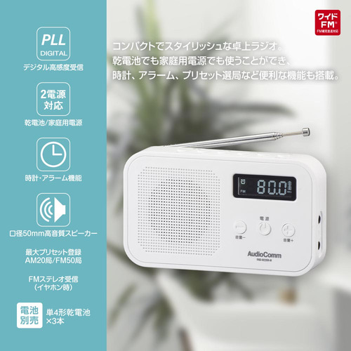 受信周波数:AM…522〜1710kHz、FM…76〜108MHz
