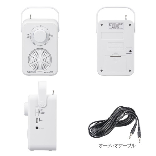 ●付属のオーディオケーブル(約5m)でテレビなどとつなぎ、耳もとスピーカーとしても使えるAM/FMラジオ