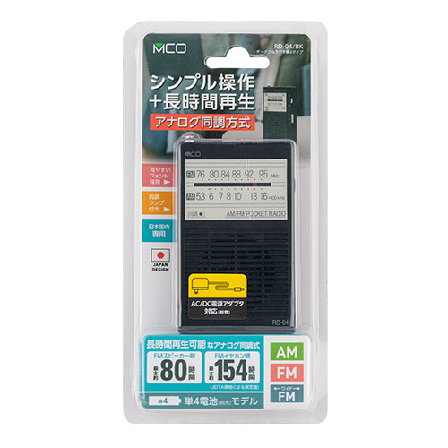 ●長時間再生可能なアナログ同調方式ラジオ。単4電池タイプ