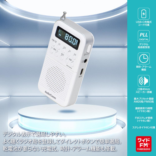 ●デジタル表示で選局しやすい、ポケットサイズのコンパクトラジオ