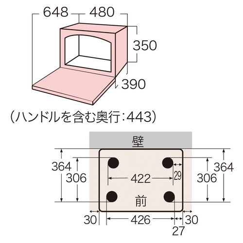 外形寸法(幅×奥行×高さ):480×390×350(mm)※ハンドル含まず