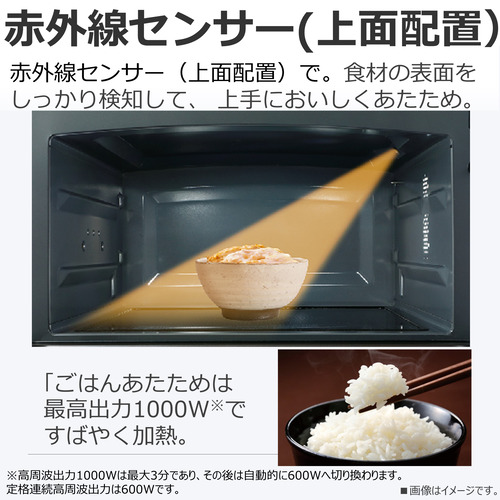 毎日使うごはん・おかずのあたためはワンタッチでおまかせ。赤外線センサーで、解凍も、のみものも、適温に仕上げます。