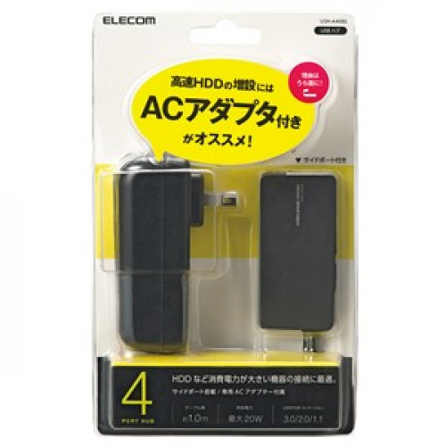 エレコム U3H-A408SBK USB3.0ハブ ACアダプタ付属 4ポート セルフ&バスパワー ブラック