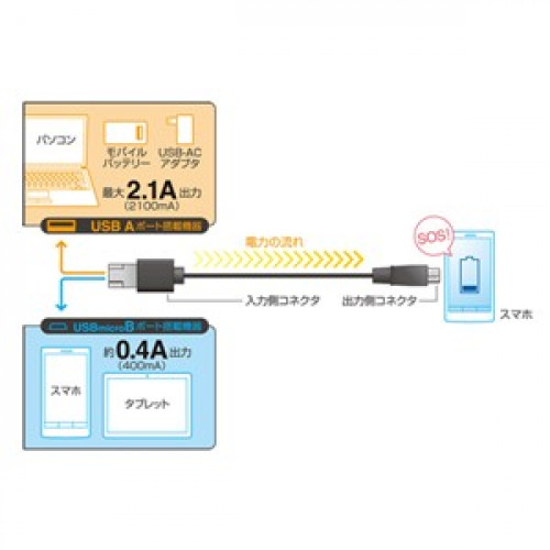コネクタ形状 出力側: USB Aコネクタ オス/USB micro Bコネクタ オス